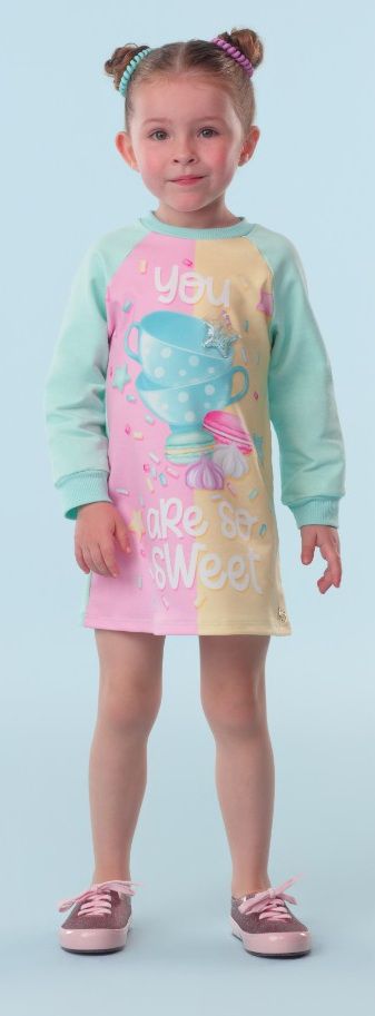Vestido Infantil Inverno Mon Sucré Merengue 18216 - Vestido em cotton com mangas longas - Golinha e punhos em ribana. Lançamento Inverno 21 Mon Sucré. Coleção Sweet Dreams.
