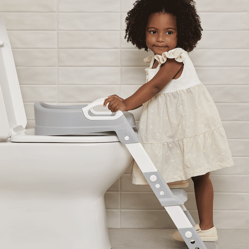 Possui degrau que serve de apoio para os pés, facilitando o acesso ao assento, e alças que proporcionam conforto e segurança aos pequenos.