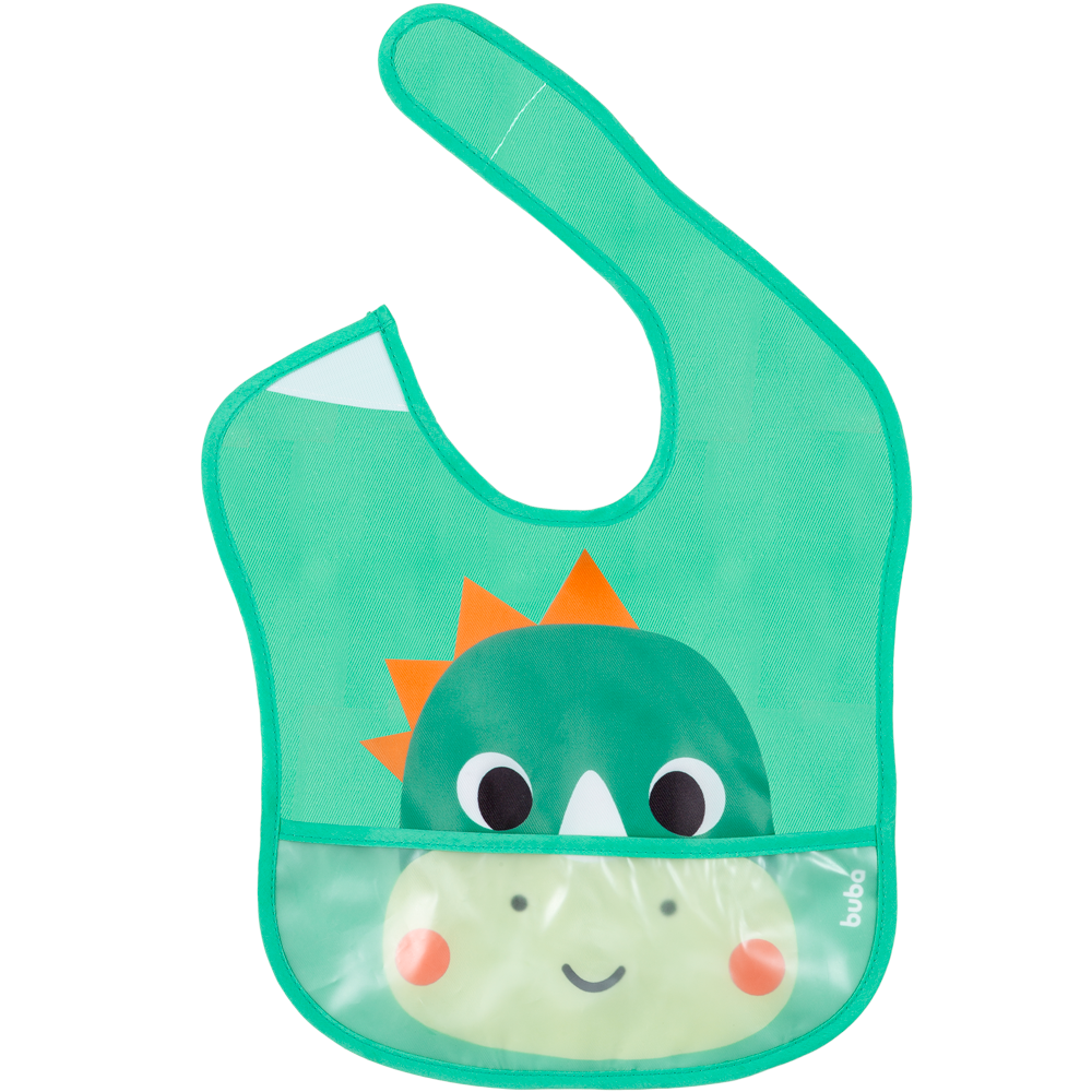 O Babador com Bolso Buba Zoo possui tecido impermeável e bolso pega-migalhas, ideal para proteger a roupinha do bebê. O fecho em velcro se ajusta facilmente ao pescoço do pequeno.