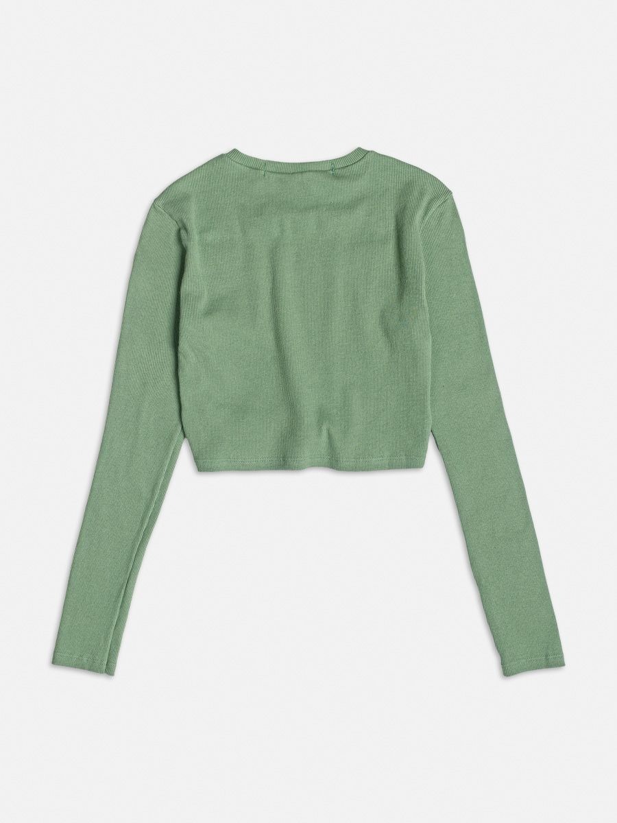 A blusa de malha canelada I Am foi feita na cor verde, com mangas longas e recortes na frente. A modelagem justa que traz ótimo caimento no corpo e ainda mais conforto aos looks, que podem ser compostos com short, saia ou calça.
