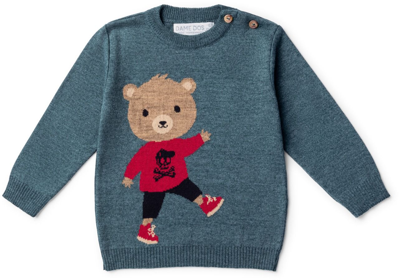 Linda blusa em tricô confeccionada com um urso rocknroll na frente. Possui dois botões no ombro facilitando o vestir. Confeccionada em 50% Acrílico e 50% Algodão.