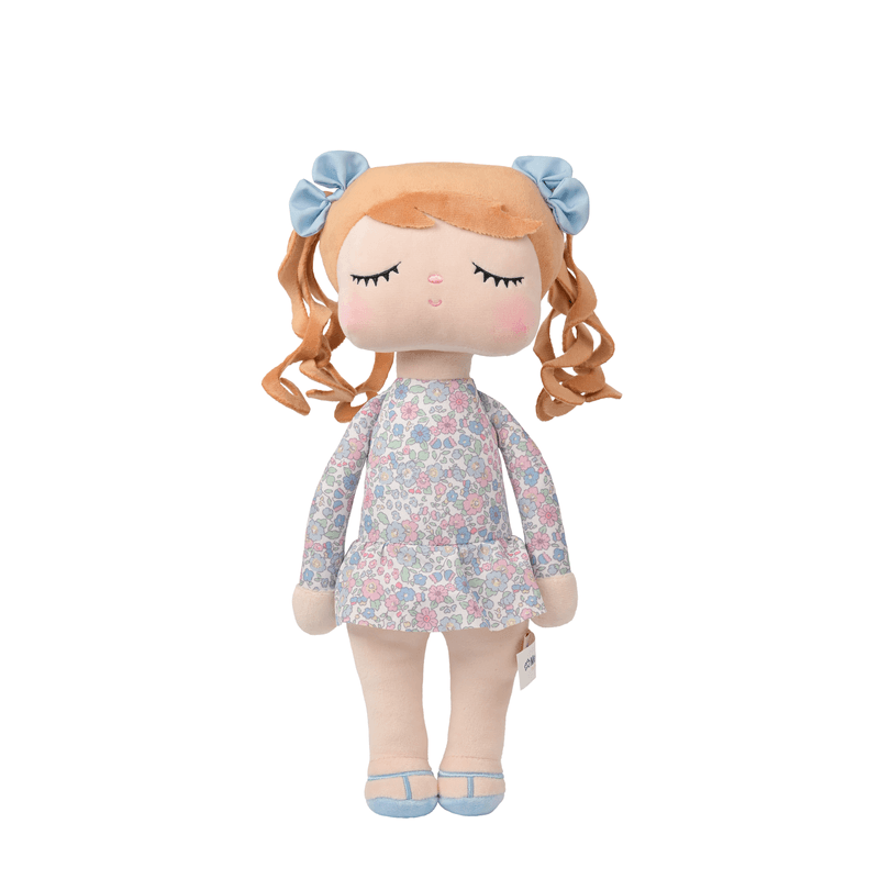 A Boneca Angela Mari é pura delicadeza! Com 33 cm, ela é super macia, leve e perfeita para acompanhar os pequenos em todas as brincadeiras. Seu vestido floral e laços azuis trazem um charme especial, tornando-a uma ótima opção para presentear.