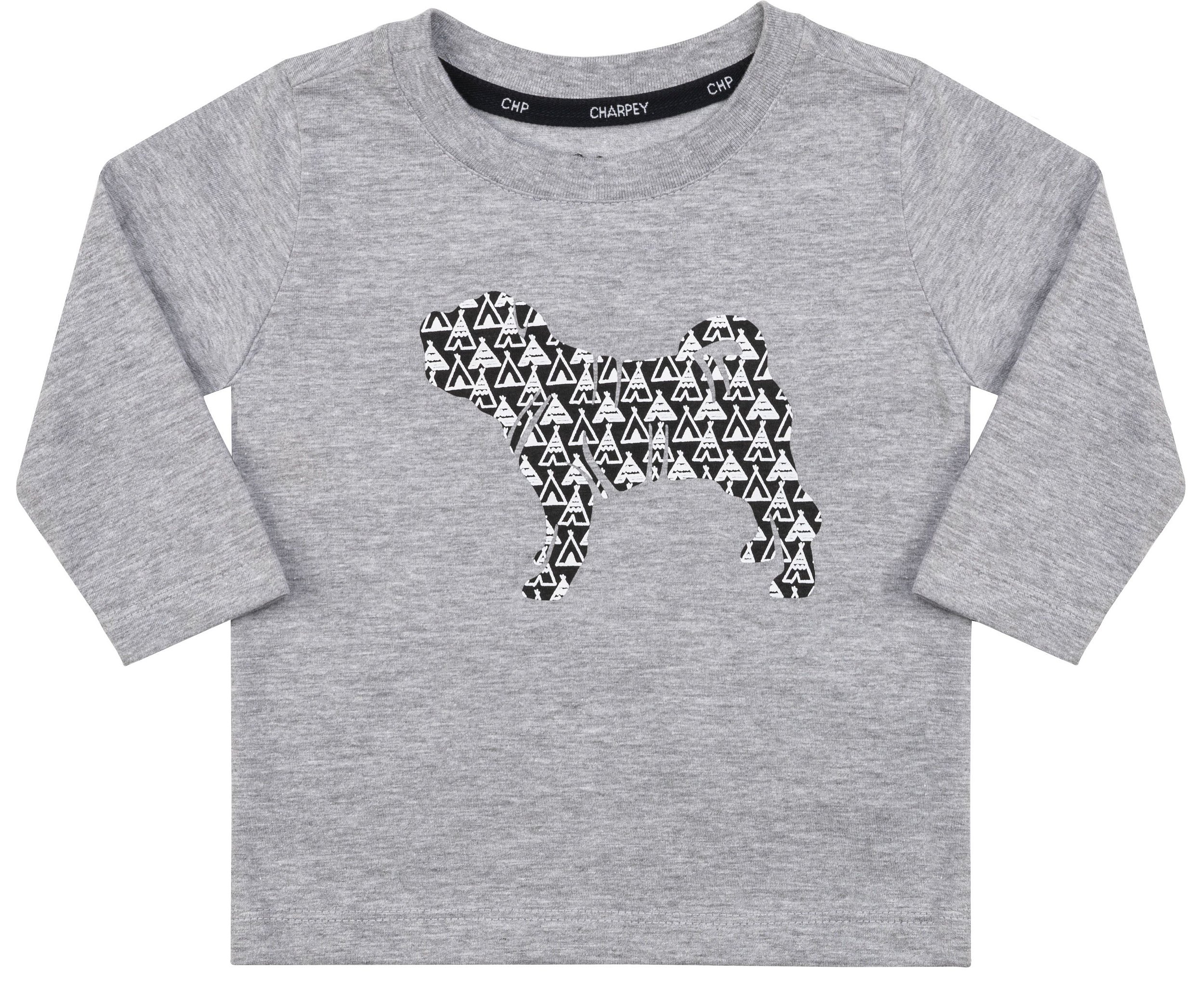 Camiseta Bebê Manga Longa Cinza Estampa Cachorro Menino - Charpey