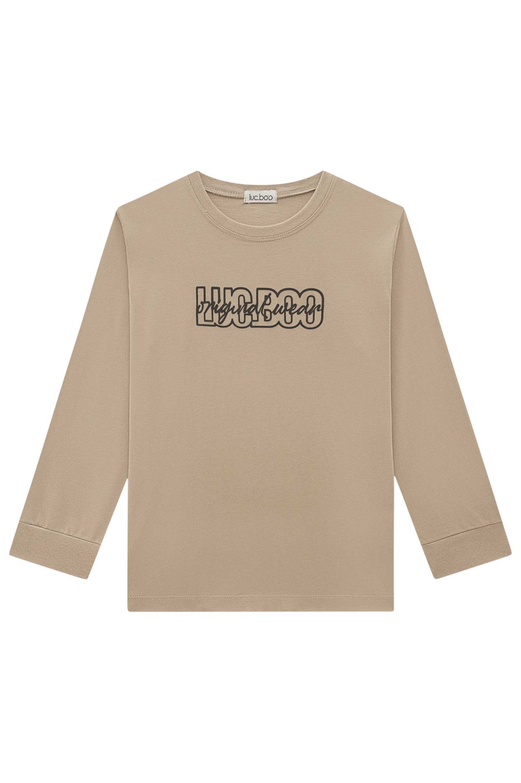 Camiseta de manga comprida infantil, básica com um conceito contemporâneo que aposta em referências clean, minimalista e divertidas, tudo isso sem abrir mão do conforto que esse menino exige.