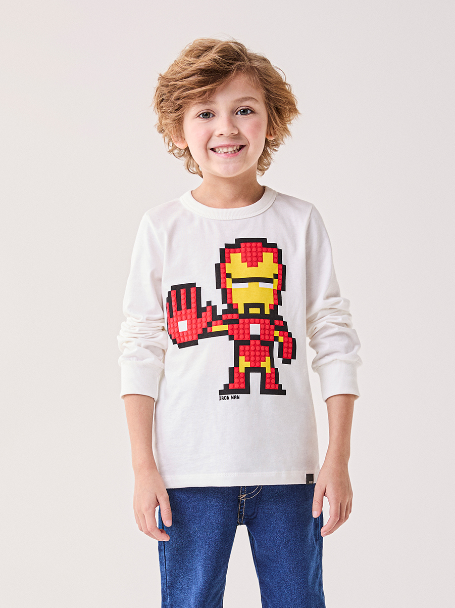 A T-Shirt Manga Longa do Homem de Ferro com Estampa Texturizada traz força e conforto ao inverno infantil. Produzida em tecido macio, garante toque suave e ótimo caimento. A estampa em relevo cria destaque visual e valoriza o personagem. As mangas longas oferecem proteção contra o frio leve. Uma peça pensada para mães que buscam conforto, resistência e um visual marcante.