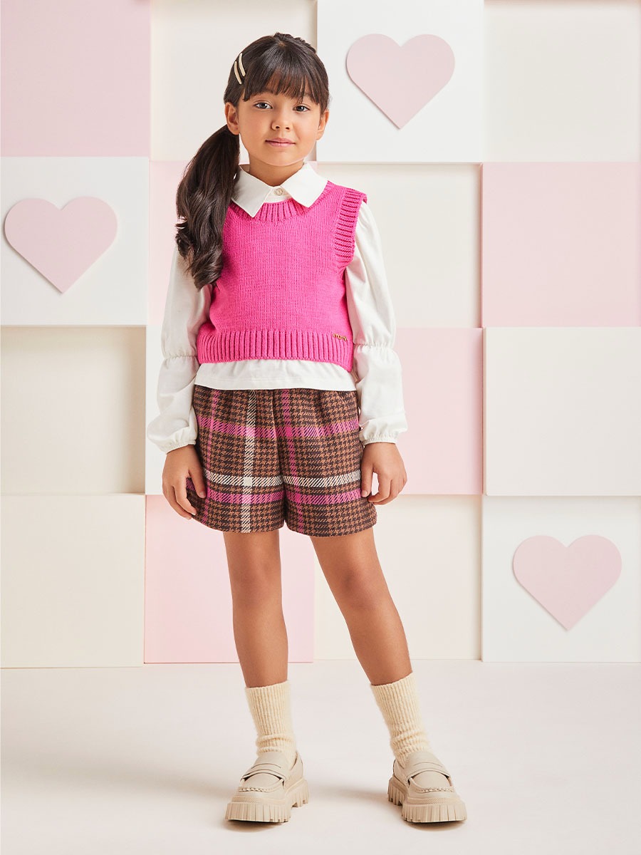 Encante-se com o charme do colete pink infantil da Momi. Confeccionado em tricot, apresenta uma plaquinha de metal exclusiva, adicionando um toque especial na peça. O design delicado é perfeito para criar looks modernos e cheios de estilo para o dia a dia.