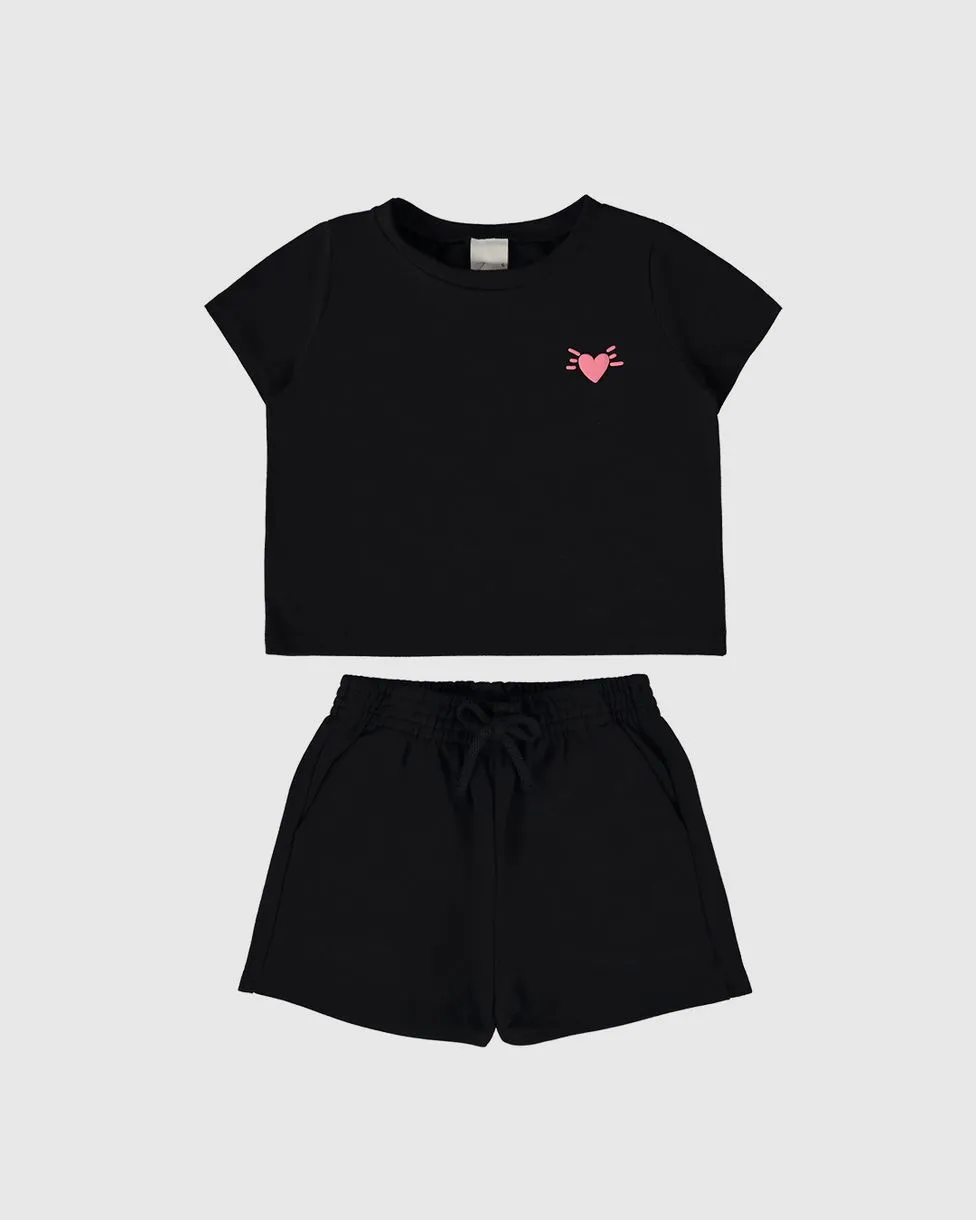 CONJUNTO BLUSINHA BOX E SHORTS PRETO MALWEE