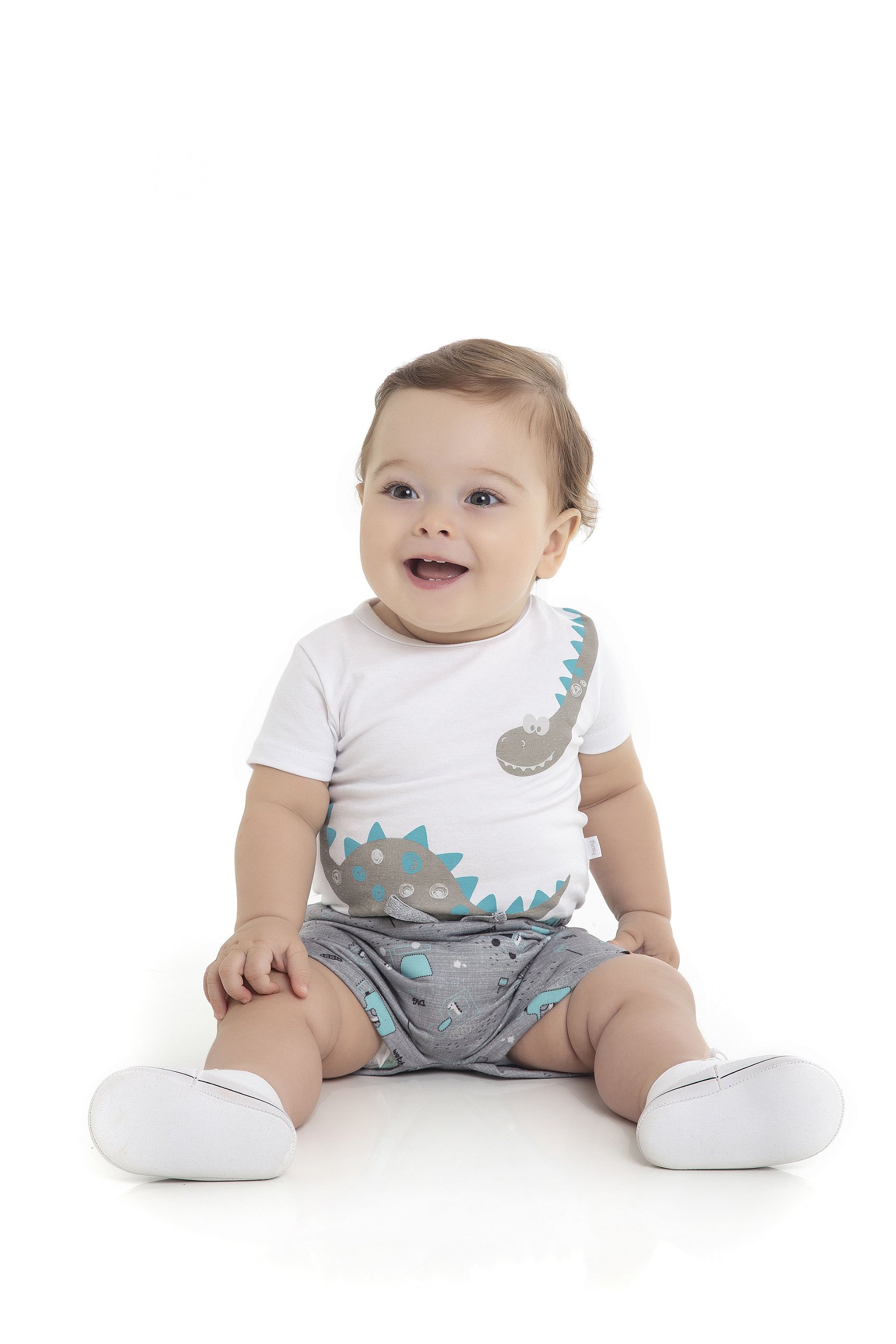 Conjunto Body MG Curta + Bermuda Branco Hug Baby