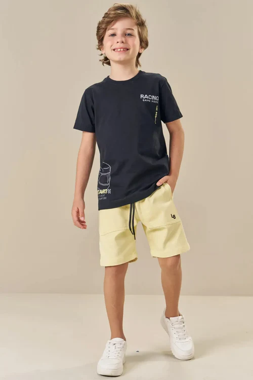 O conjunto de camiseta em meia malha e bermuda em sarja soft com elastano da Luc.boo prepara os pequenos para os dias de sol e diversão. Este conjunto confortável e estiloso é perfeito para aproveitar a praia, a piscina ou um dia de lazer.