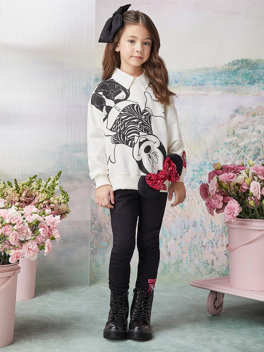 Os Conjuntos são os aliados perfeitos para combinações que trazem conforto e modernidade no dia a dia das meninas. Feito em parceria com a Disney esse conjunto é composto por um casaco de moletom com estampa licenciada da Minnie Mouse usando uma estampa da coleção e uma calça legging preta. O casaco conta com mangas e punhos em ribana e aplicação de um laço em paetê em cima da estampa, já a calça traz modelagem justa e elástico no cós. Finalizam seu design com etiqueta decorativa Animê.