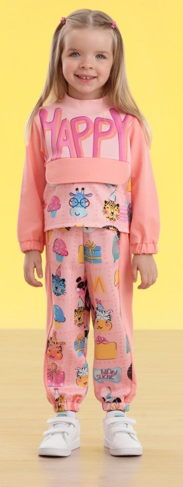 Conjunto Happy com estampa de bichinhos da marca Mon Sucré, as pequenas vão ficar lindas e cheias de estilo.