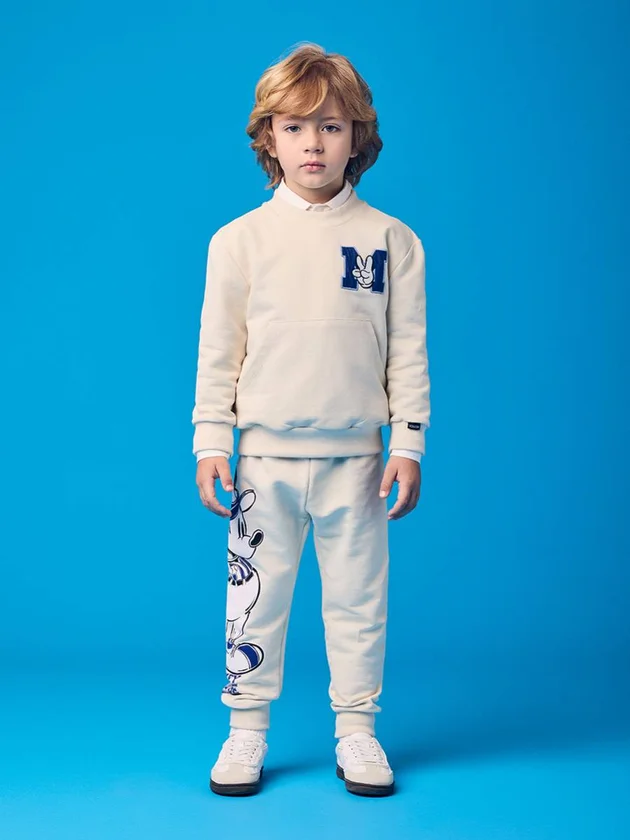 O Conjunto Moletom Infantil do Mickey Beisebolista traz um visual esportivo e superconfortável para o dia a dia. O blusão possui bolso canguru, punhos marcados e patch com a letra “M”.