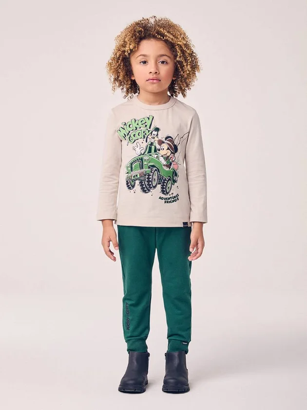 O Conjunto Infantil do Mickey and Goofy chega com uma pegada radical e divertida. A blusa traz os dois amigos em uma aventura de jipe, cheia de movimento e cores que chamam atenção. A calça verde completa o look com conforto e caimento leve, perfeita para acompanhar a correria do dia. Um visual estiloso, prático e cheio de personalidade para o pequeno explorar o mundo.