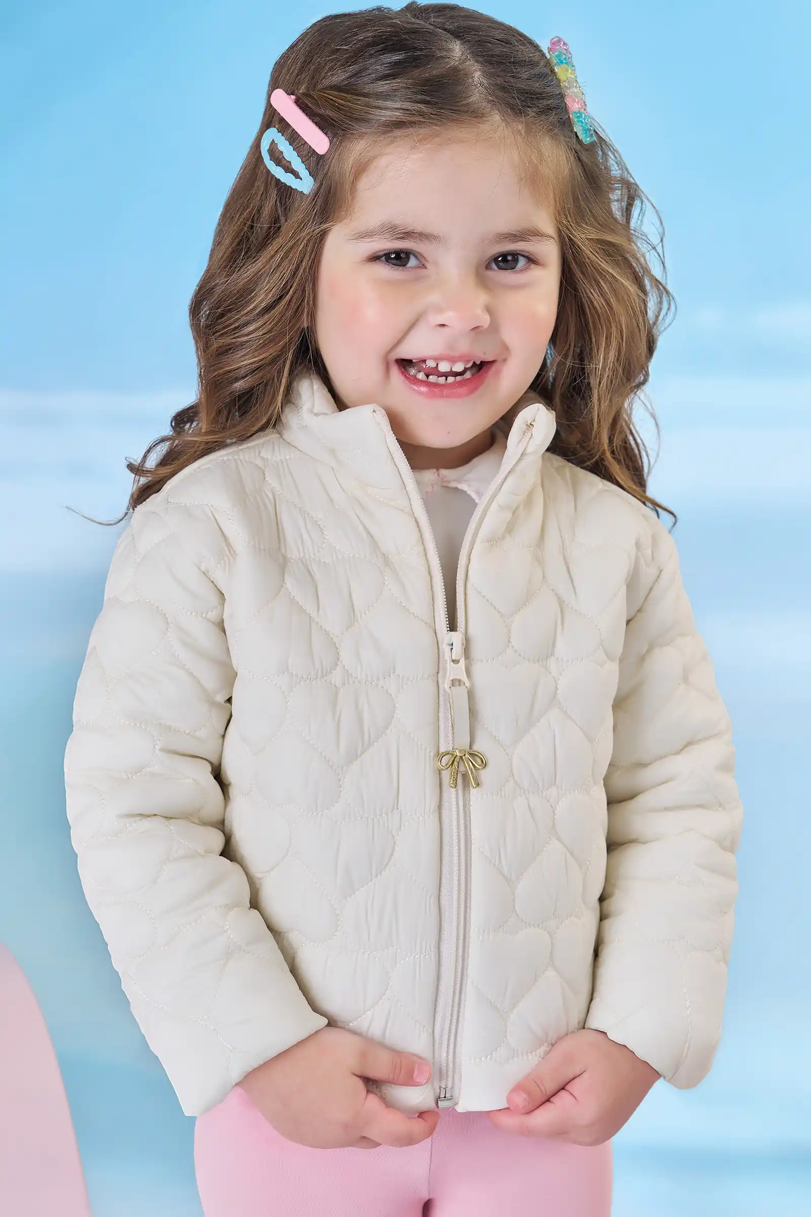 A jaqueta em matelassê corações é a escolha perfeita para as meninas que buscam conforto máximo sem abrir mão do estilo no dia! Disponível em uma cor super estilosa - off white - ela é uma peça essencial, versátil e super confortável para compor diversos looks e deixar o inverno das pequenas ainda mais estiloso.
