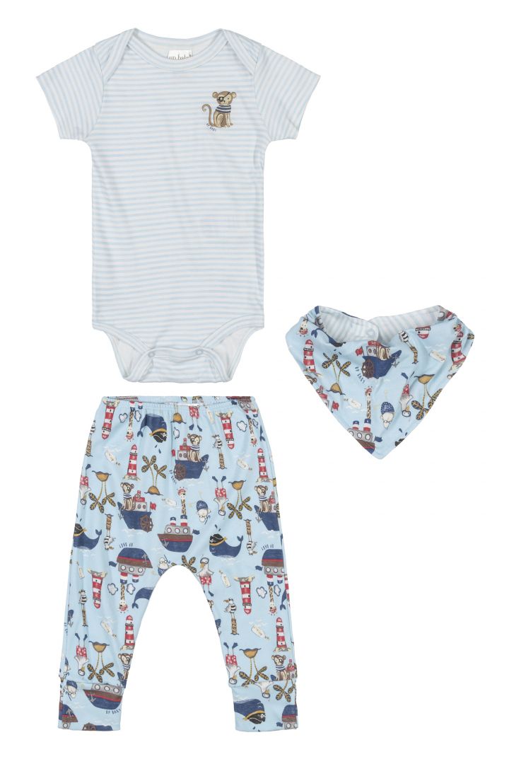 KIT BODY MANGA CURTA, CALCA E BABADOR EM SUEDINE LIS577 LISTRADO - UP BABY