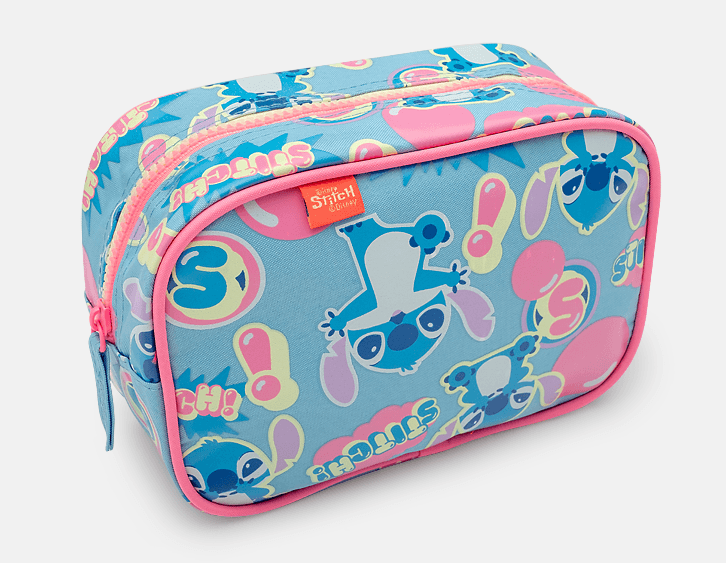 A necessaire média é perfeita para te acompanhar no dia a dia, pois tem o tamanho ideal para guardar seus principais itens. Com estampa corrida do Stitch.