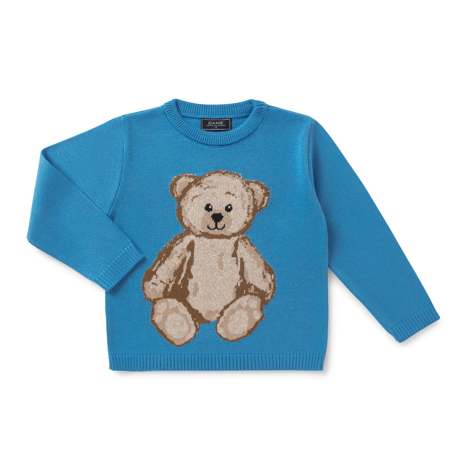 Frente com maxi urso em jacquard localizado com fio peludo para efeito decorativo.