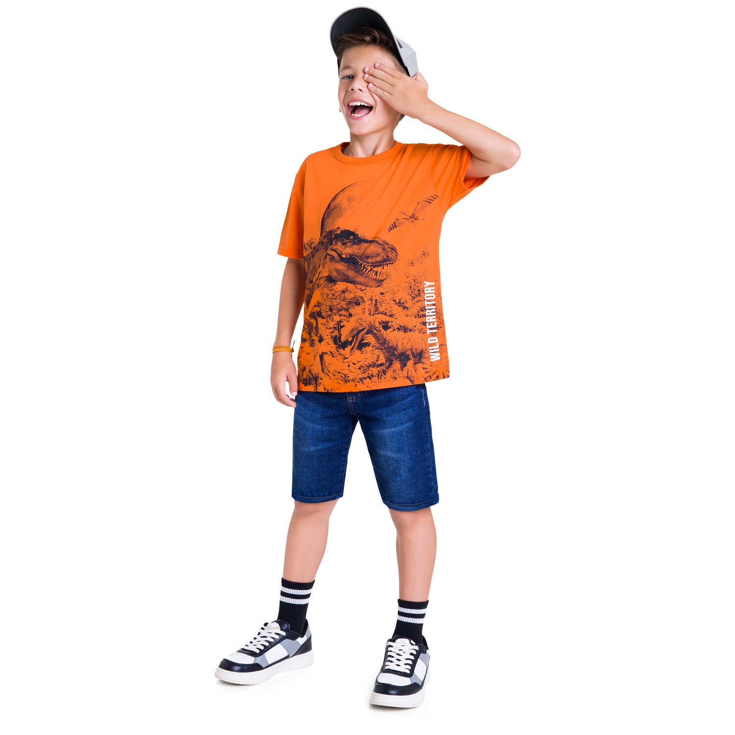 Camiseta Infantil Masculina Kyly confeccionada em Meia Malha, possui modelagem tradicional e estampa frontal de Jacaré.