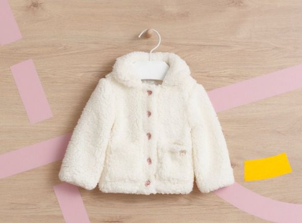 Casaco infantil Off White Mon Sucré de malha plush - Coleção Funny.