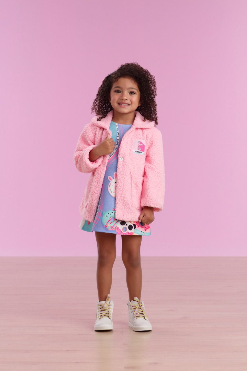 Casaco Infantil bebê rosa Mon Sucré de malha plush, todo forrado com malha macia e super confortável.