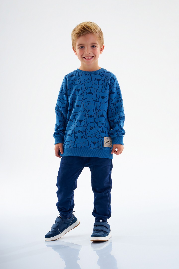 Conjunto em moletom composto por blusão estampado e calça lisa da Up Baby