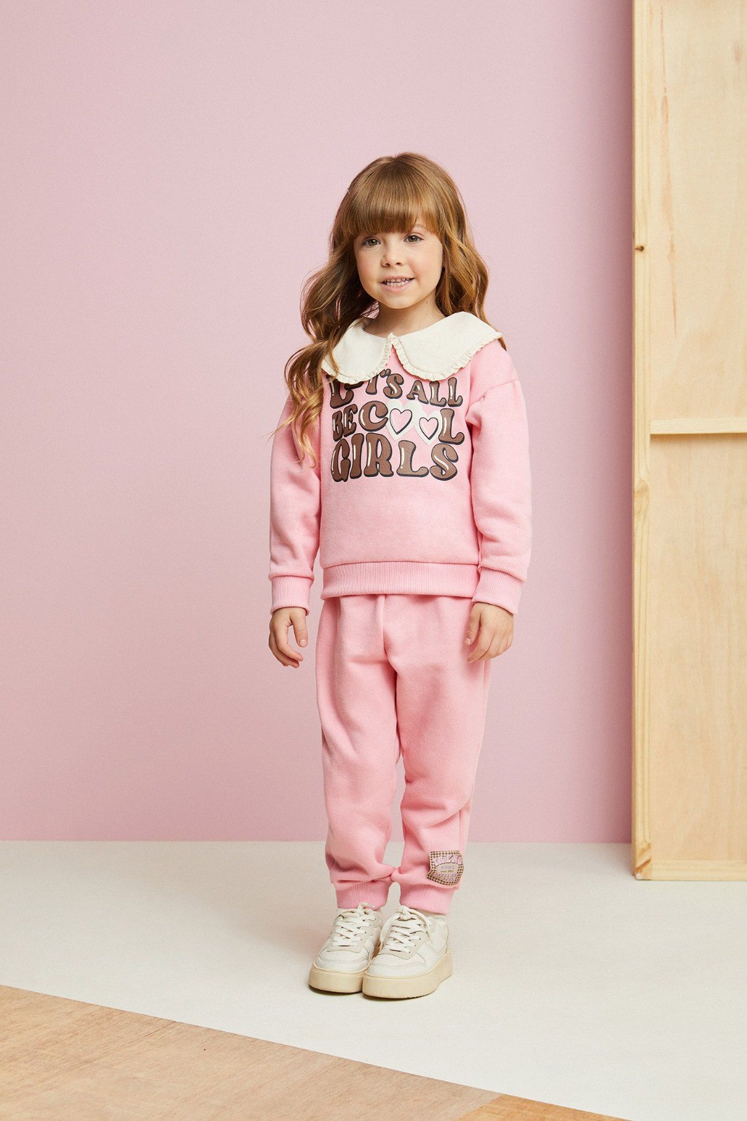 Desenvolvido em moletom, o conjunto infantil Momi possui destaque especial para o tecido felpudo que é ideal para os dias mais frios. Possui frontal com estampa, punho em ribana e cintura com elástico aumentando o conforto.