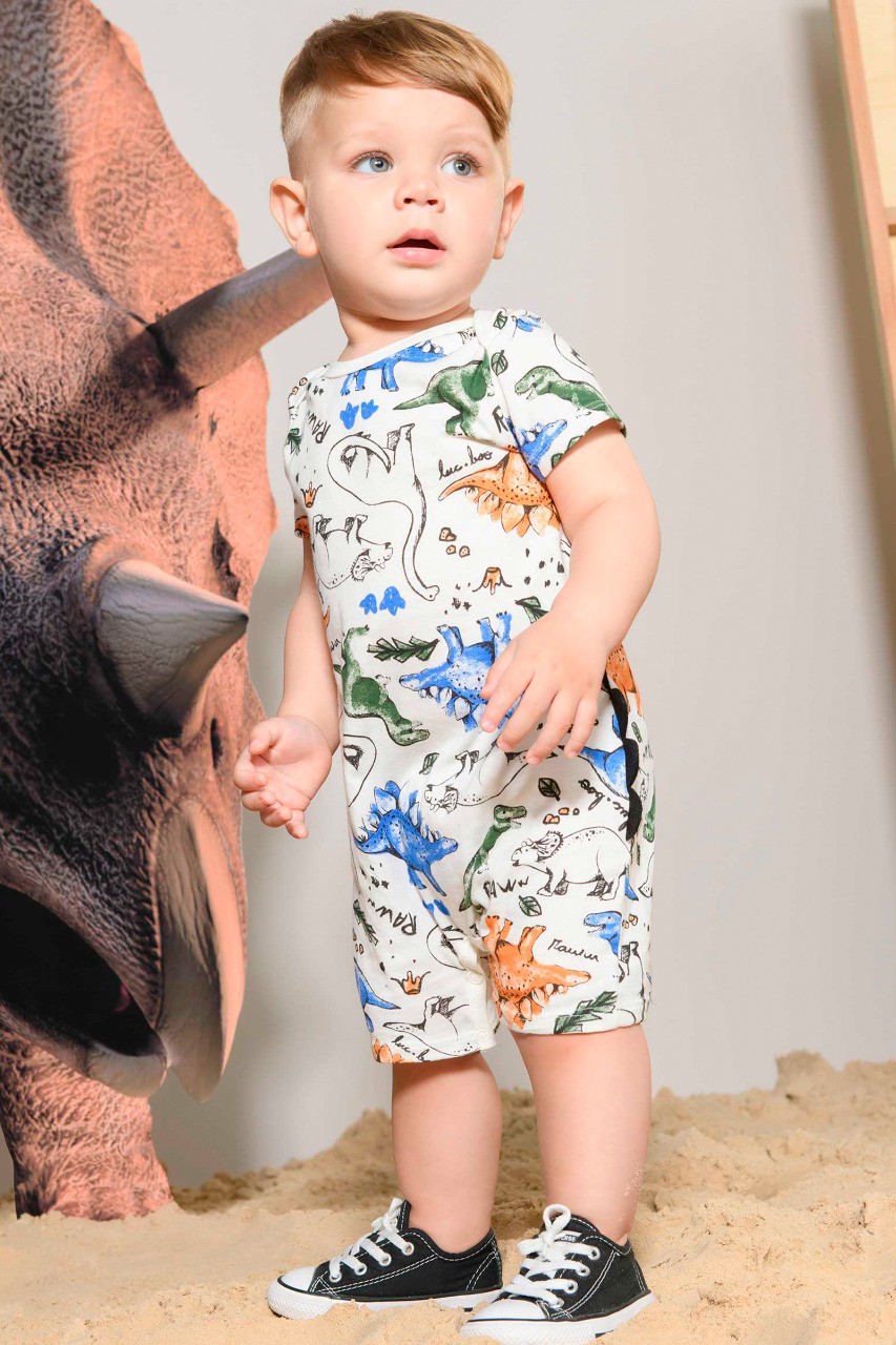 Macacão Curto Estampado Dinossauros Lucboo.