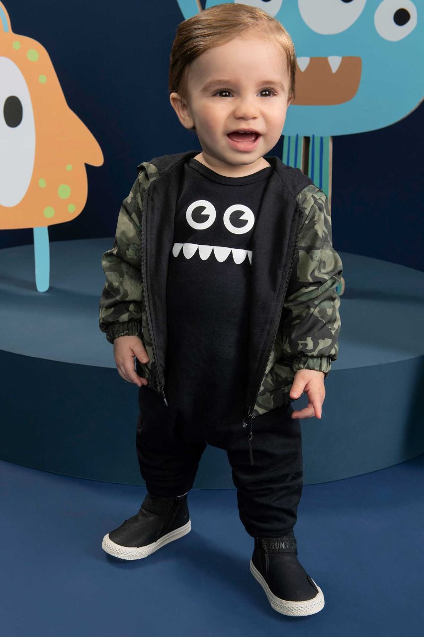 O Macacão Infantil Luc.Boo Monstrinho da Coleção de Outono/Inverno 2022 é confeccionado em Moletom.