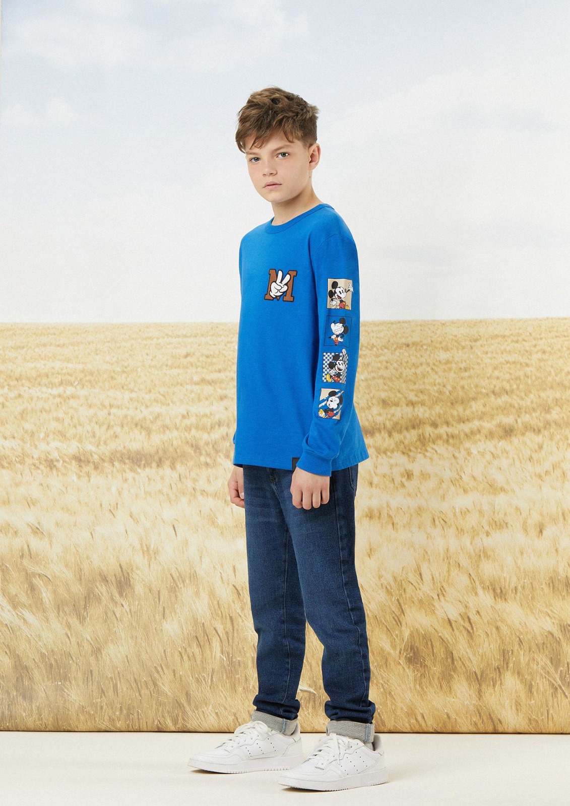 A camiseta manga longa infantil Youccie foi confeccionada em meia malha com parceria Disney + Youccie, trouxe uma peça exclusiva do Mickey Mouse.