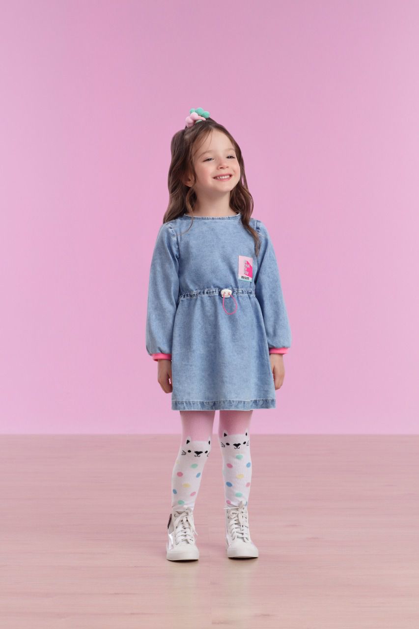 Vestido Infantil Mon Sucré de jeans leve - Coleção Soft Candy Inverno 2022