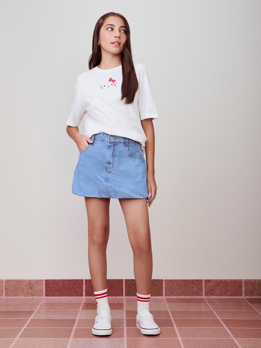 Com shape volumoso e acabamento estruturado, essa saia balonê em jeans azul traz o melhor dos anos 2000 repaginado.