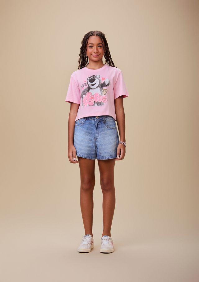A doçura do Lotso se destaca nessa t-shirt rosa, que une a vibe fun do personagem com a leveza da cor.